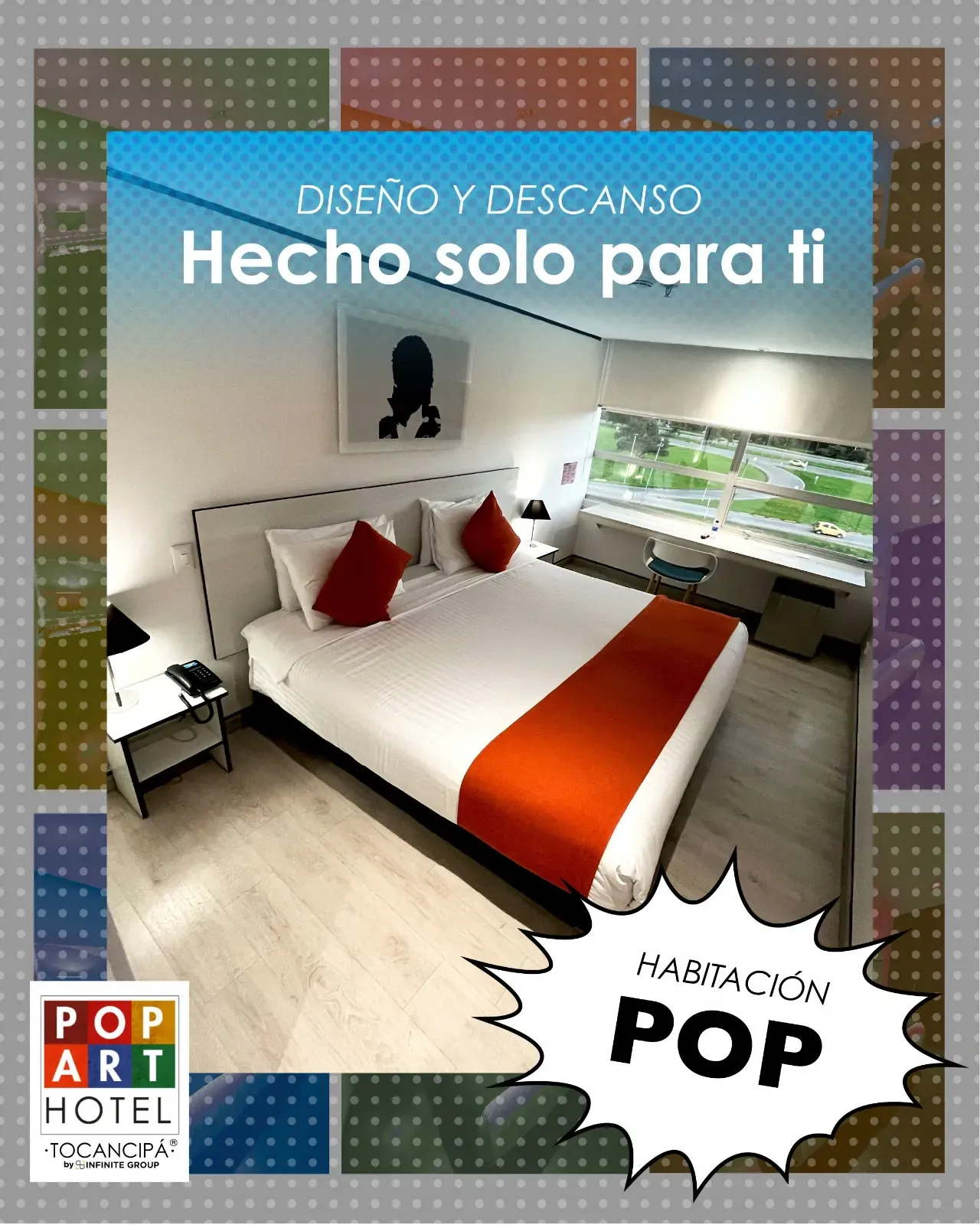 Hotel Pop Art Tocancipá, un oasis de estilo y comodidad en el corazón de Cundinamarca. Disfruta de una experiencia única con habitaciones modernas, instalaciones excepcionales y un servicio impecable.